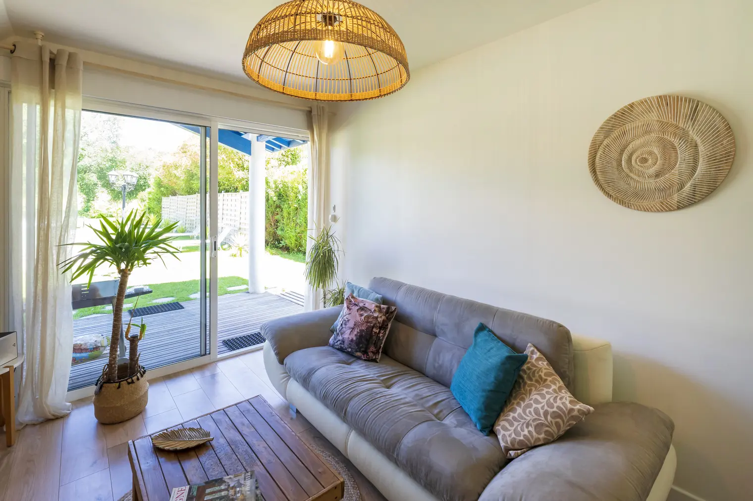 L’appartement de 65 m2, mitoyen, se trouve en campagne à côté d’un terrain de foot public (parfois animé hors vacances). Son emplacement à 10 min de Biarritz offre un accès rapide aux plages et restaurants. Si on aime se déplacer à vélo, il est facile de rejoindre la piste qui traverse des espaces verts et le littoral. La frontière espagnole à proximité vous permet de découvrir les spécialités et lieux historiques.